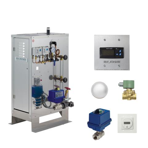 Improving on the popular CU360 steam generator, the new Mr. Steam CO360 9-kilowatt commercial steam bath generator is engineered for around-the-clock use in the most demanding commercial steam rooms. This high-efficiency, low-maintenance generator is designed to power one or two steam rooms measuring up to 360 adjusted cubic feet (ACF).